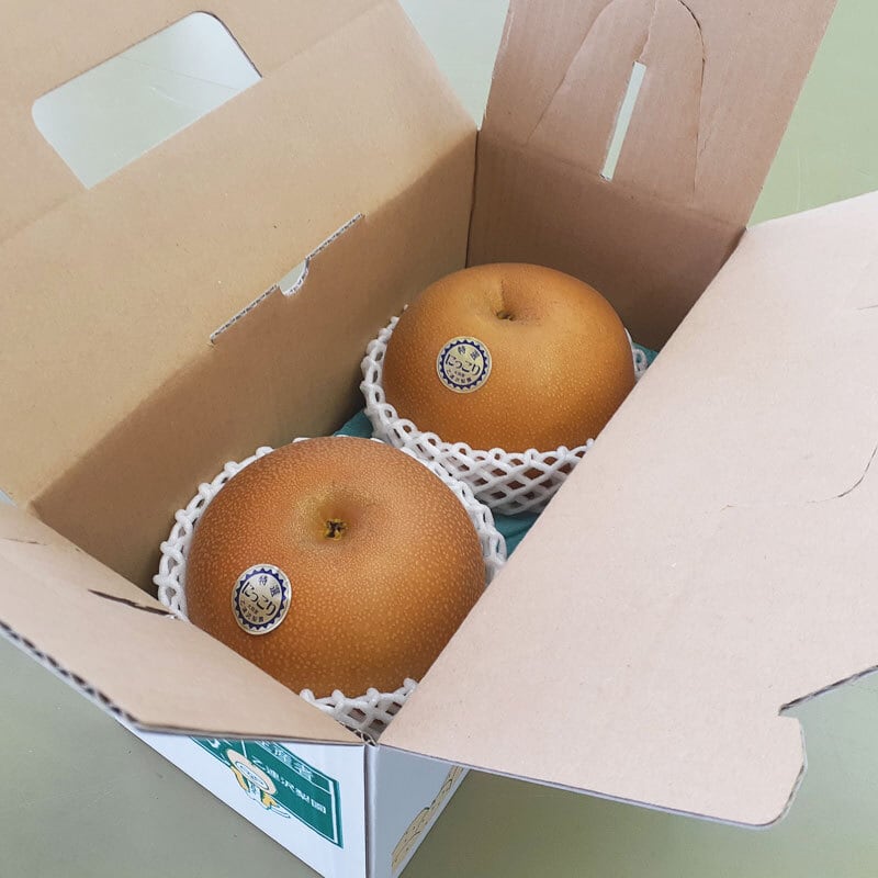 にっこり梨は、「新高」と「豊水」を掛け合わせており、大玉で甘く、ジューシーなのが特徴です。栃木県の観光地「日光」と、梨の音読み「り」を合わせて「にっこり」と名付けられました。